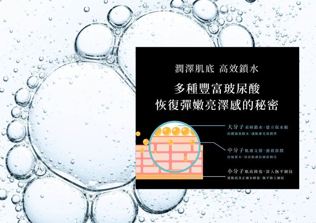 「爆水玻尿酸」三重分子,全方位水嫩澎亮。